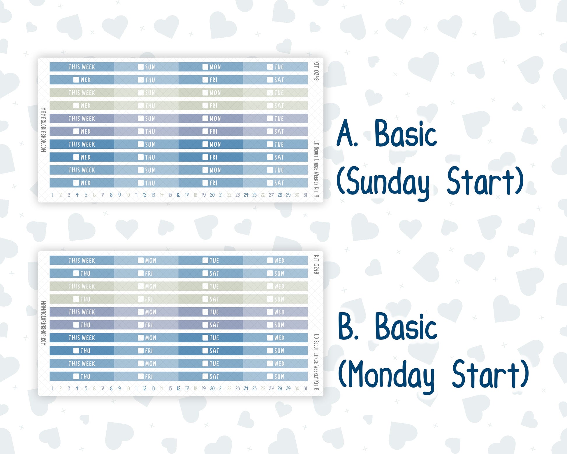 Basic Sheet: • Days of the Week Strip: 7.68” (W) x 0.28” (H)