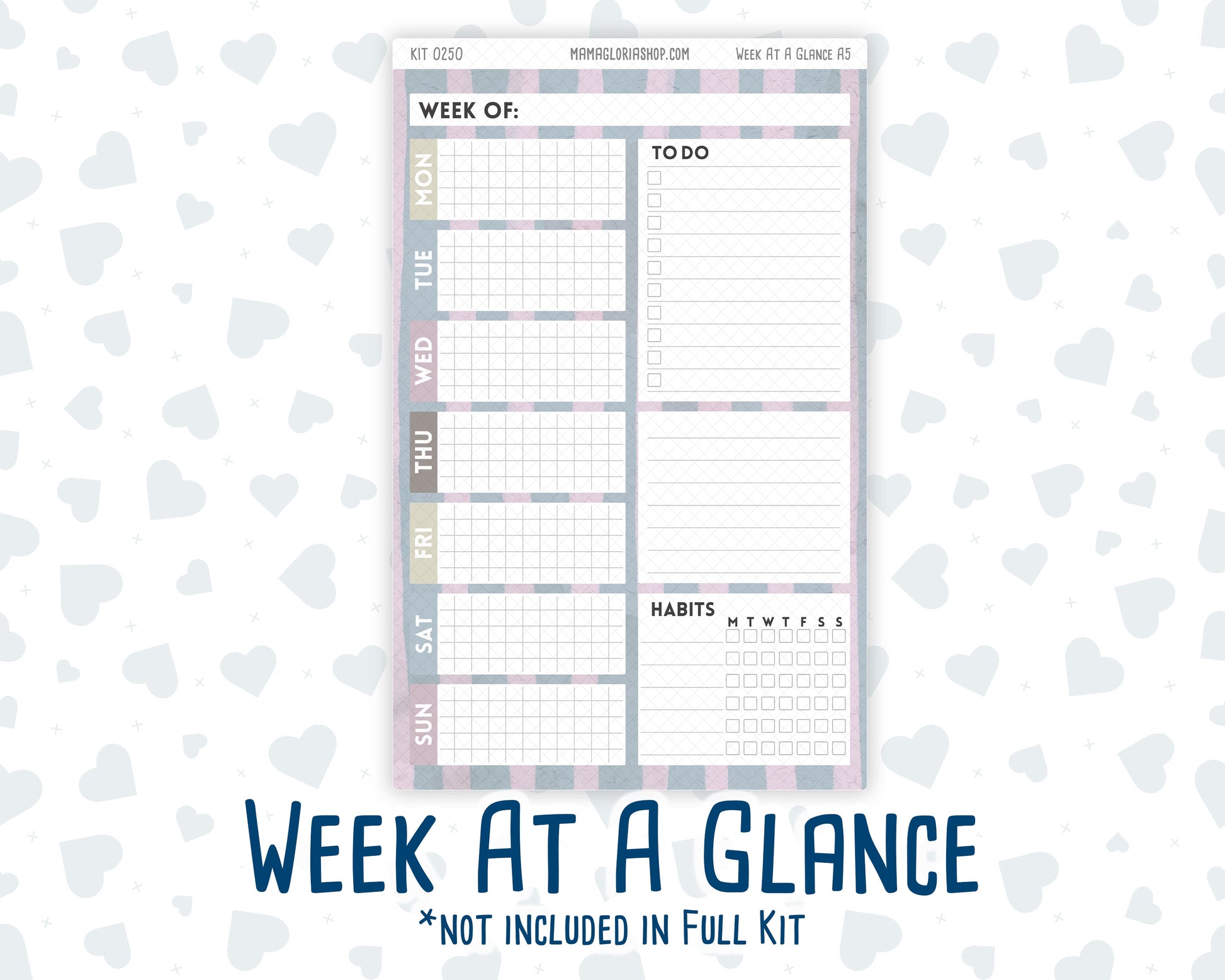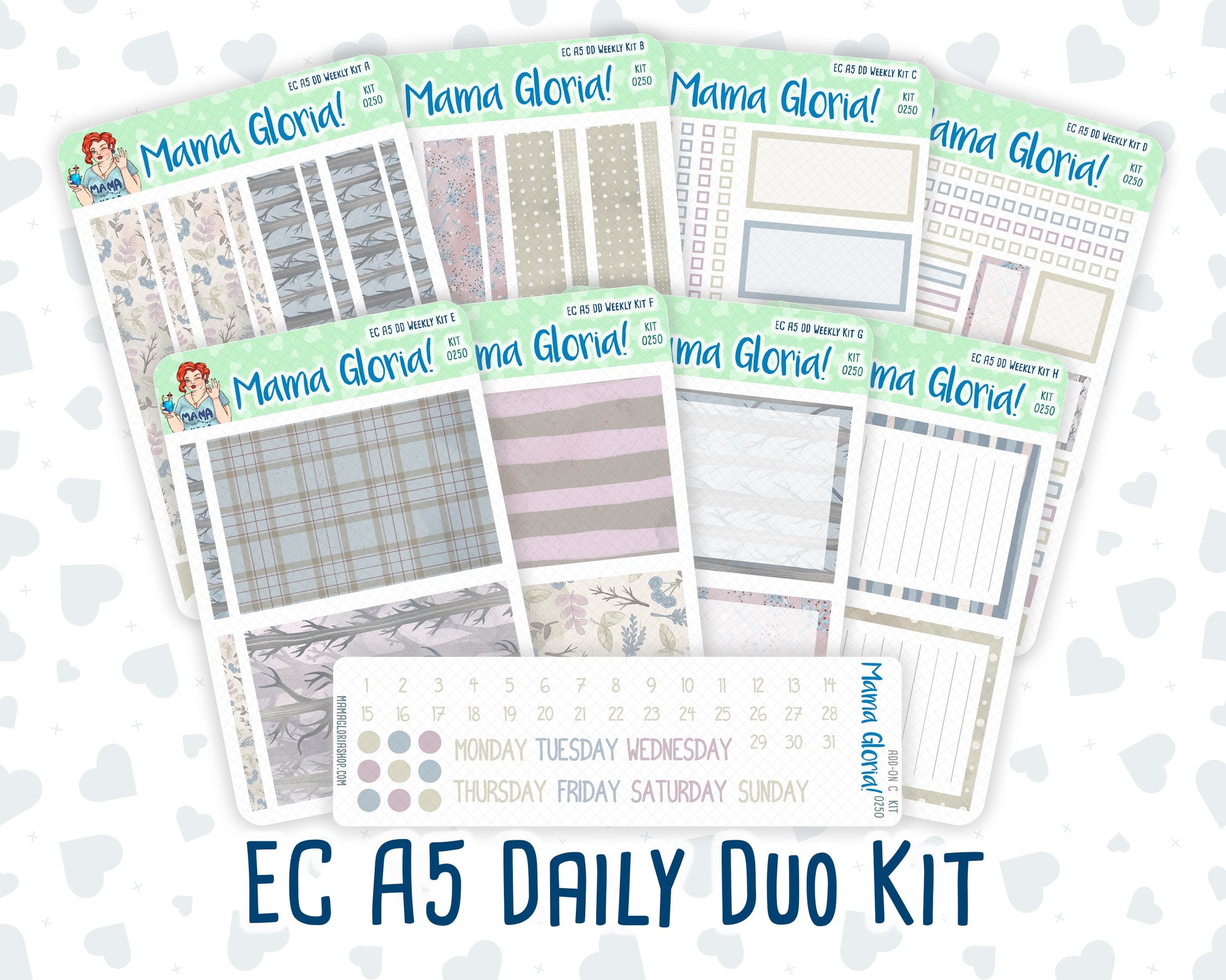 You can find additional stickers that complement this kit in the "Add Ons" category or by entering the kit's name or number in the store's search bar. Please note, WEEK AT A GLANCE and WEEKLY OVERVIEW sticker sheets are not included in the "Full Kit" option.