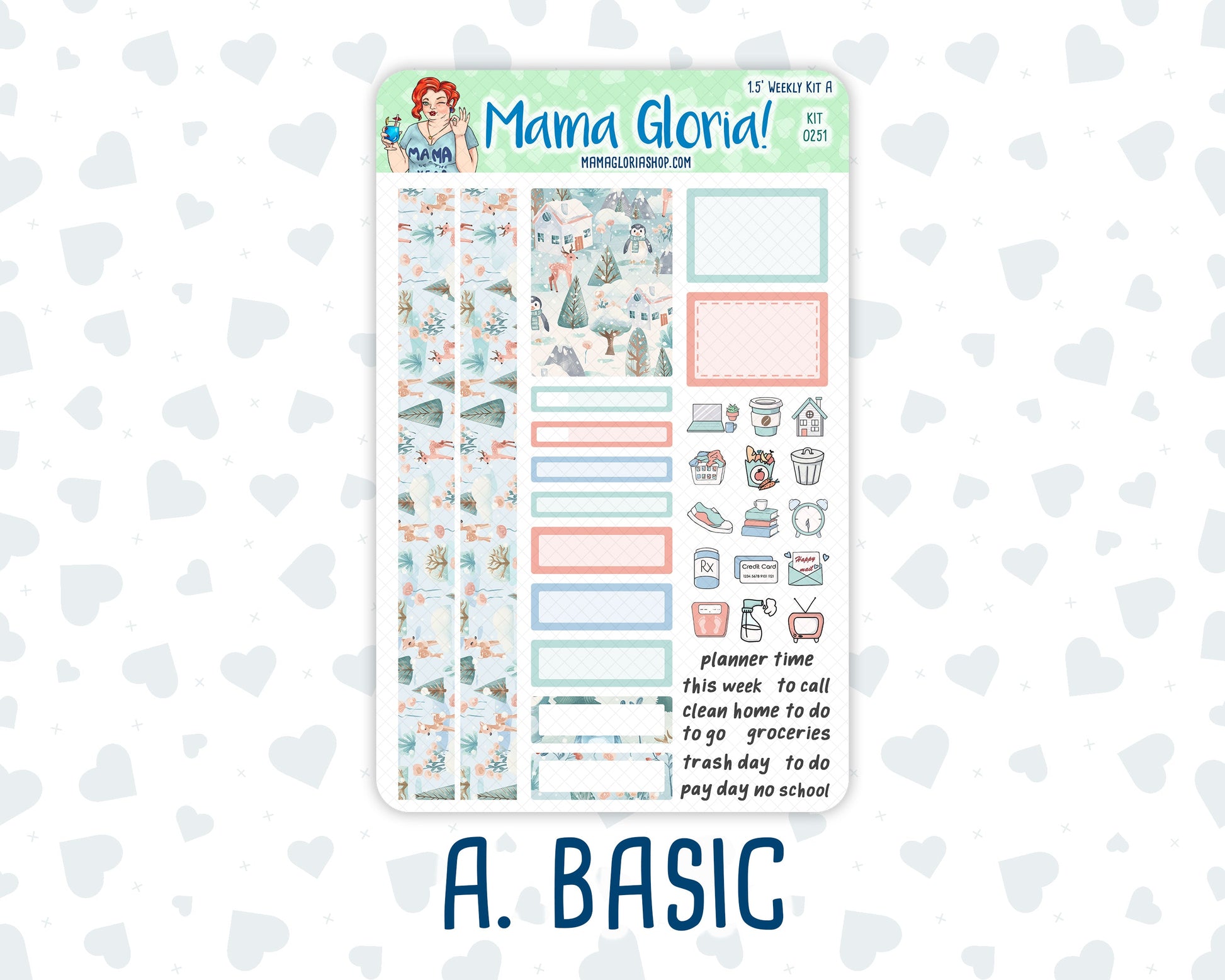 Kit 0251 - 1.5" Wide Column - Weekly Kit - January - Pine & Paws - For Vertical & Hourly Planners