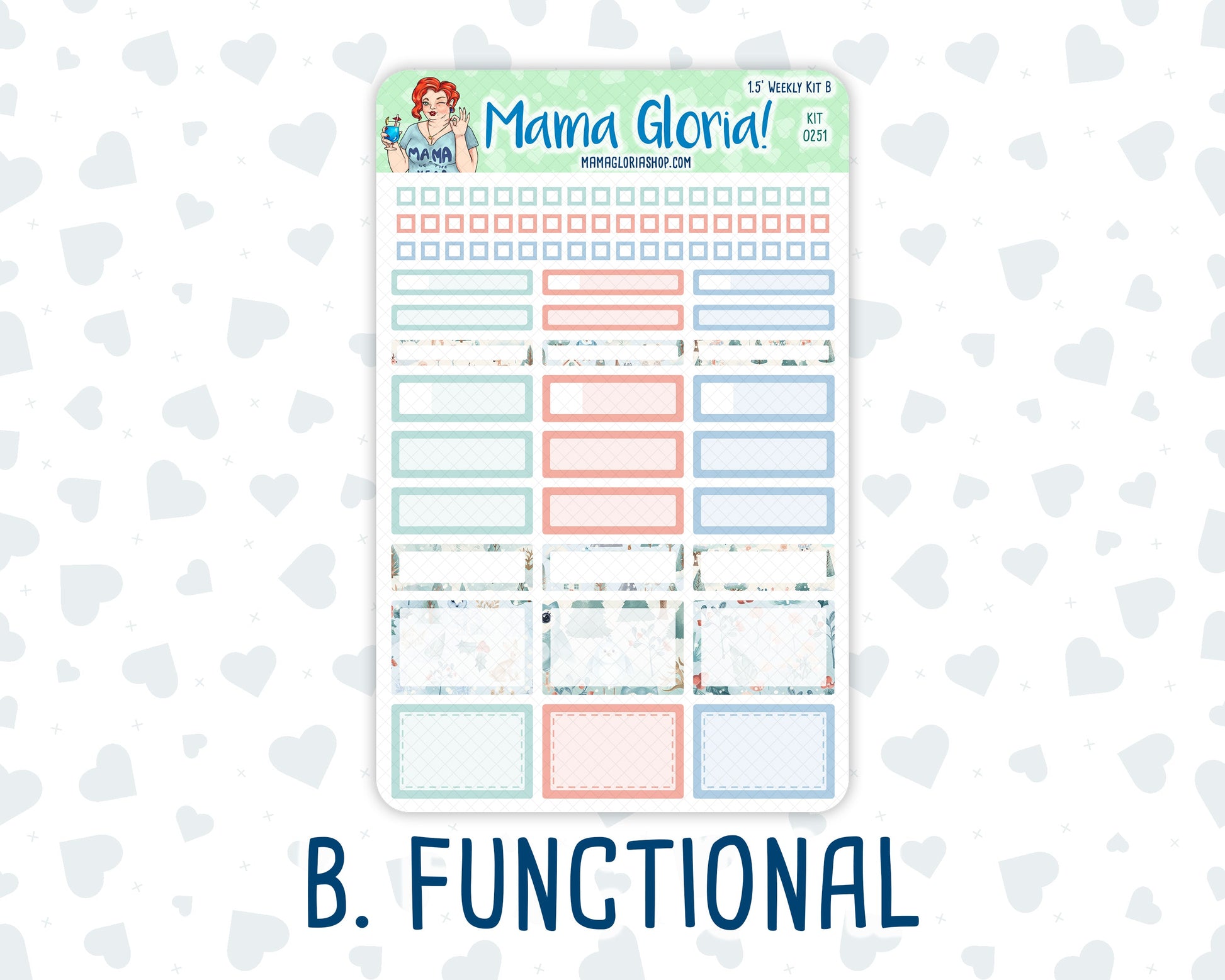 The Weekly kit consists of four full-sized sheets measuring 7.85 inches tall by 5 inches wide, including: