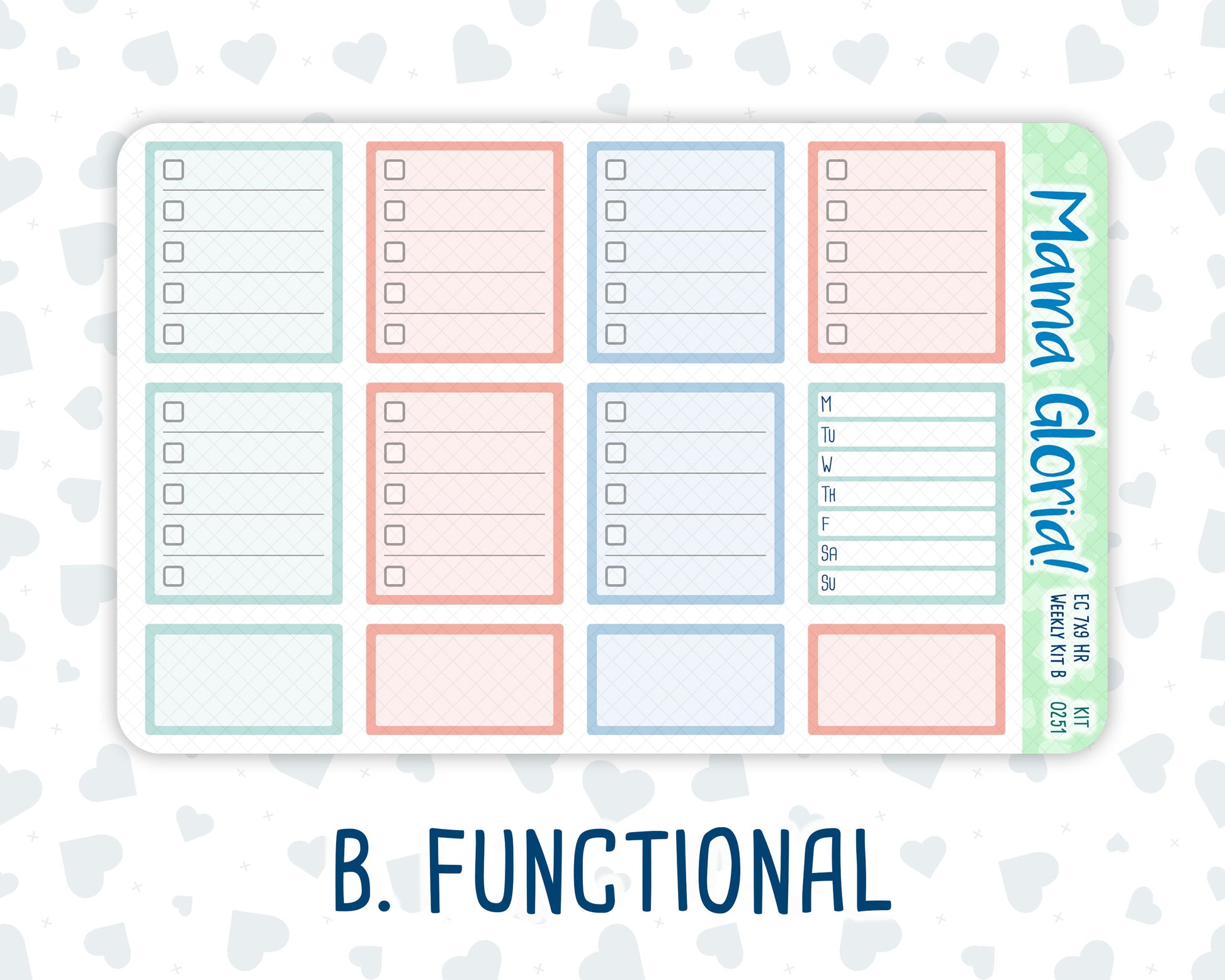 This kit is specially designed for the Erin Condren 7x9 Horizontal planner. However, some pages such as Functional, Extras, and Decorative are also suitable for the Erin Condren Hourly Planner.