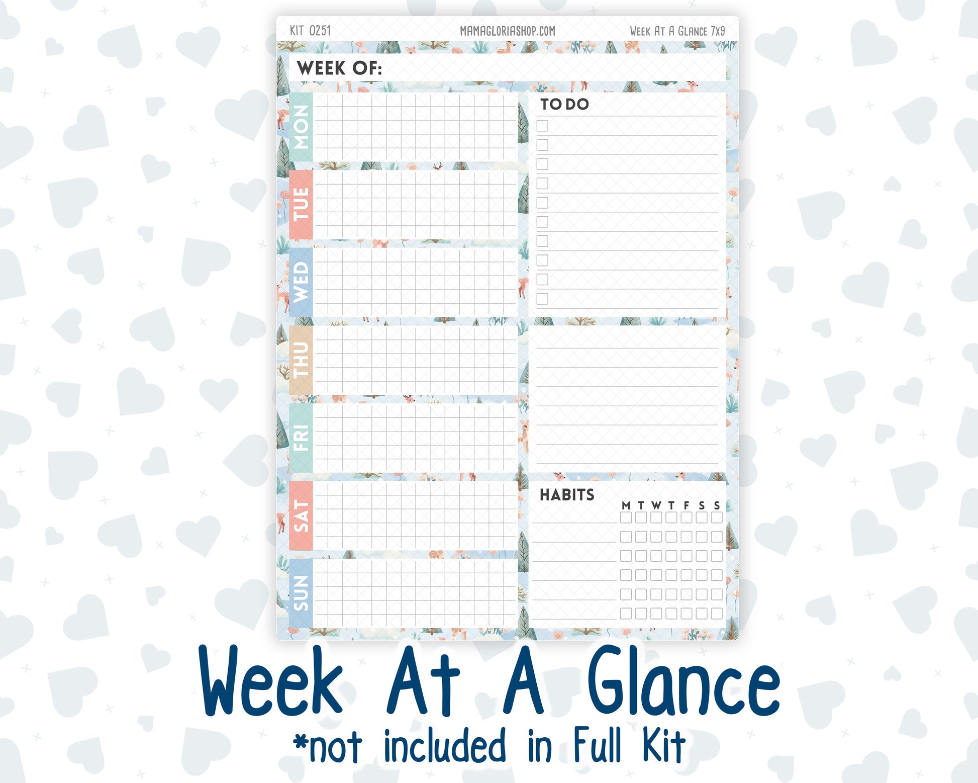 Please note, WEEK AT A GLANCE sticker sheet are not included in the "Full Kit" option.