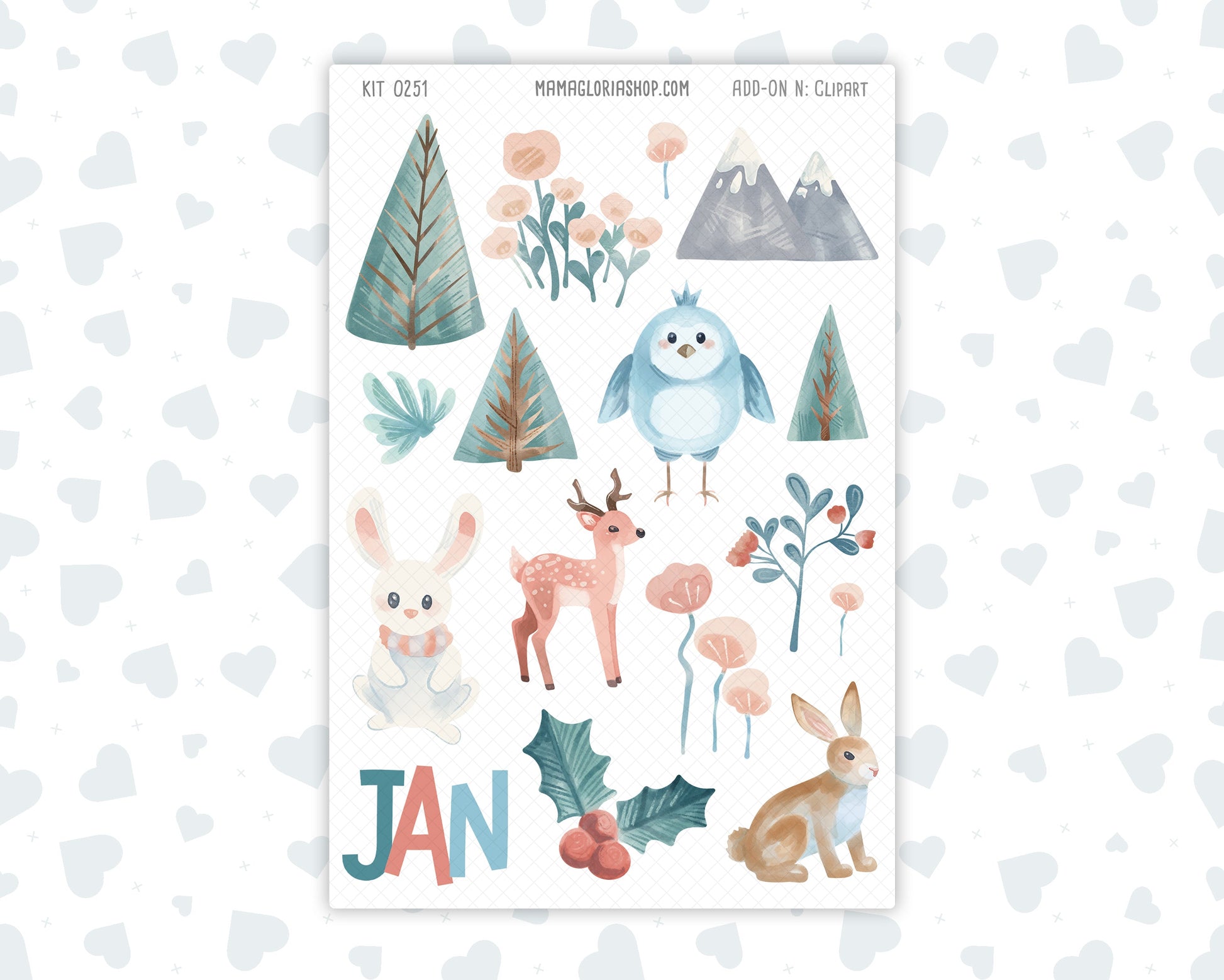 Kit 0251 - Clipart - For Planners | Notebooks | Journals - January - Pine & Paws