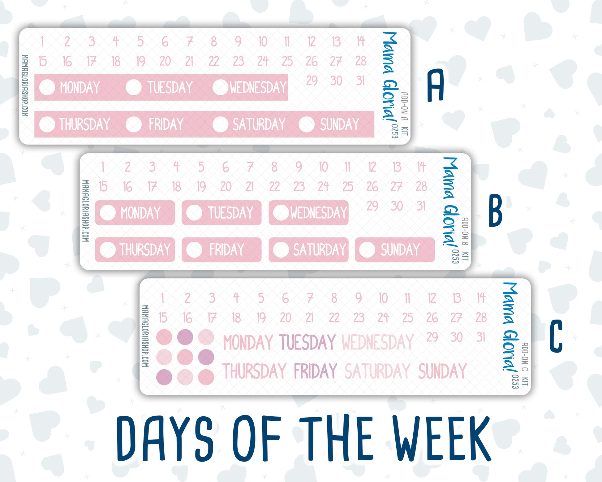 Kit 0253 - Add Ons - February - Rosy Daydreams - Planner Stickers
