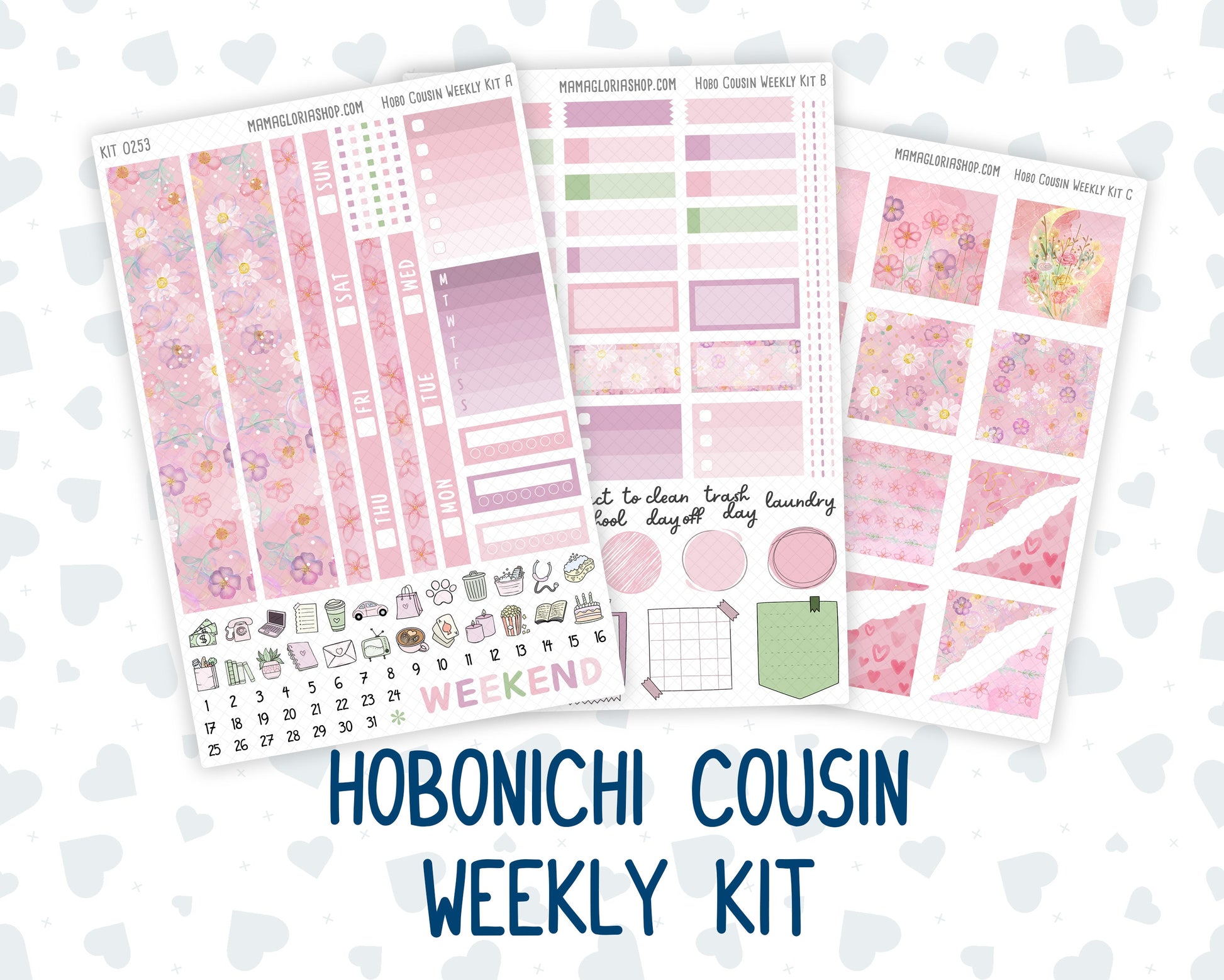 Kit 0253 - Hobonichi Cousin - Weekly Kit - February - Rosy Daydreams - 1.3” Wide Columns
