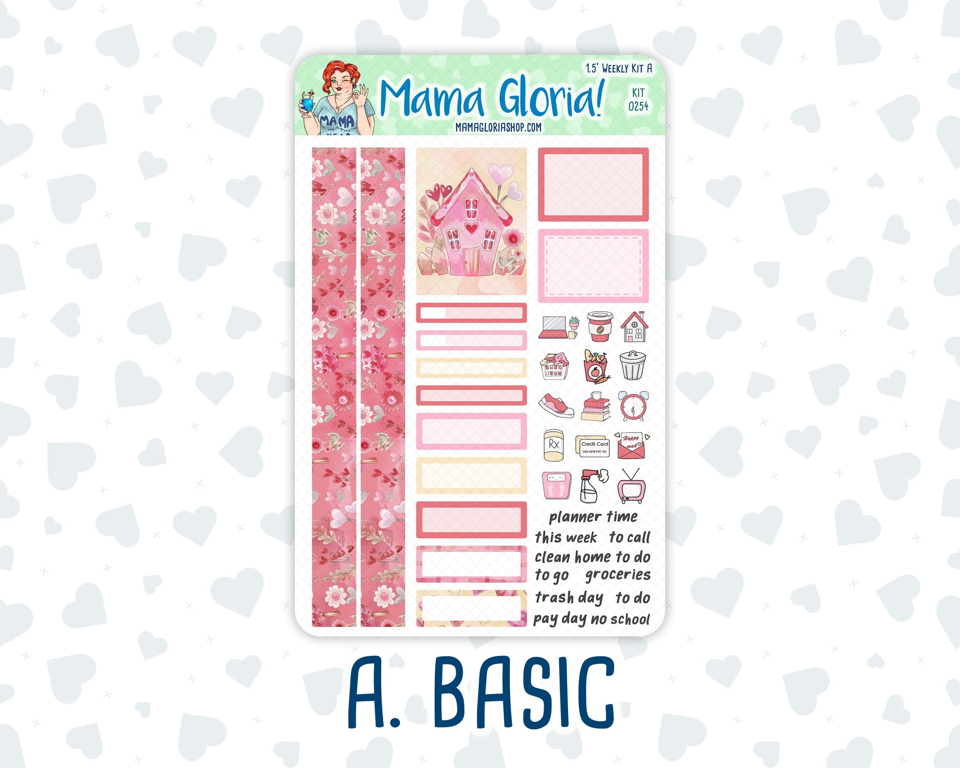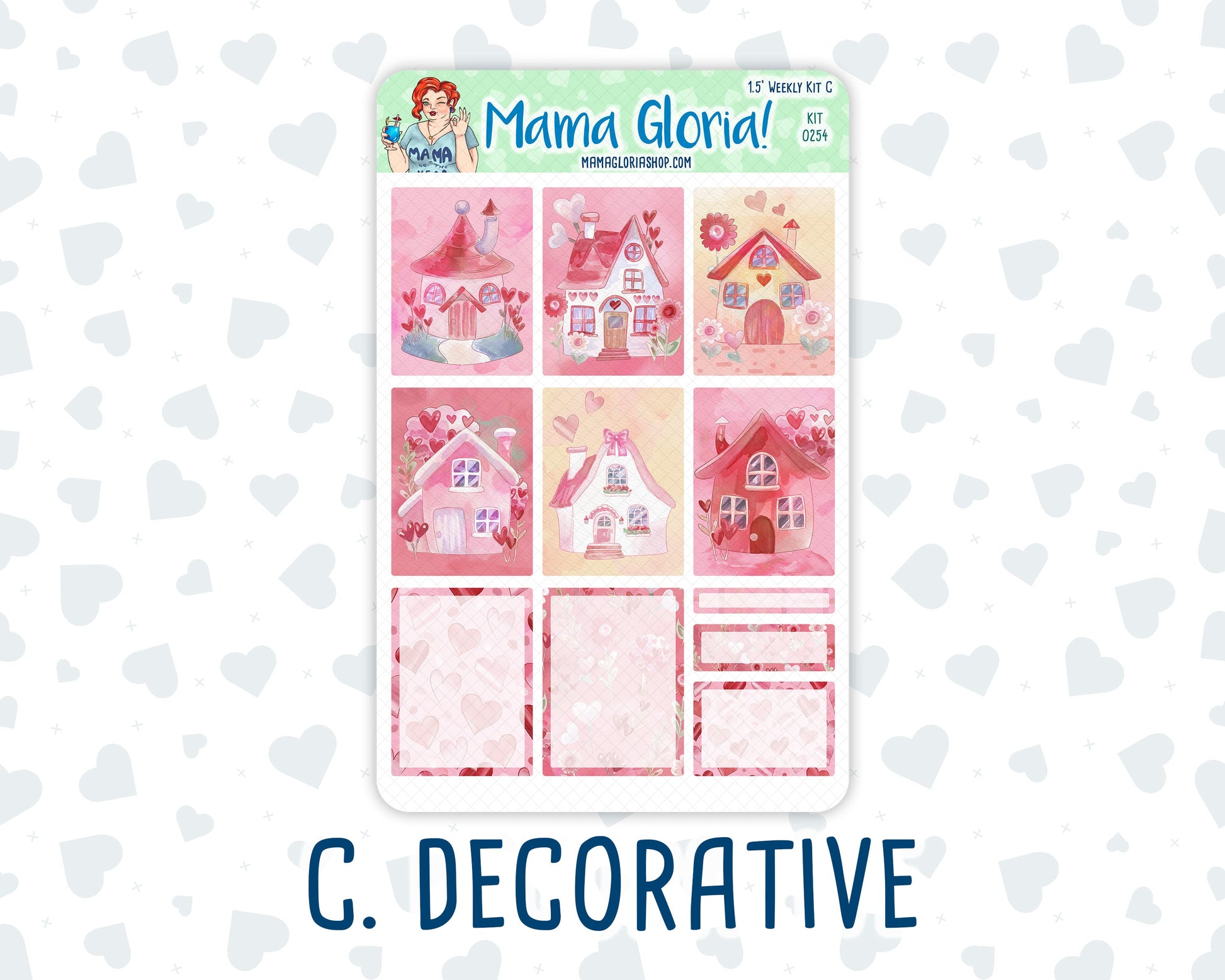 Kit 0254 - 1.5" Wide Column - Weekly Kit - February - Valentine Village - For Vertical & Hourly Planners