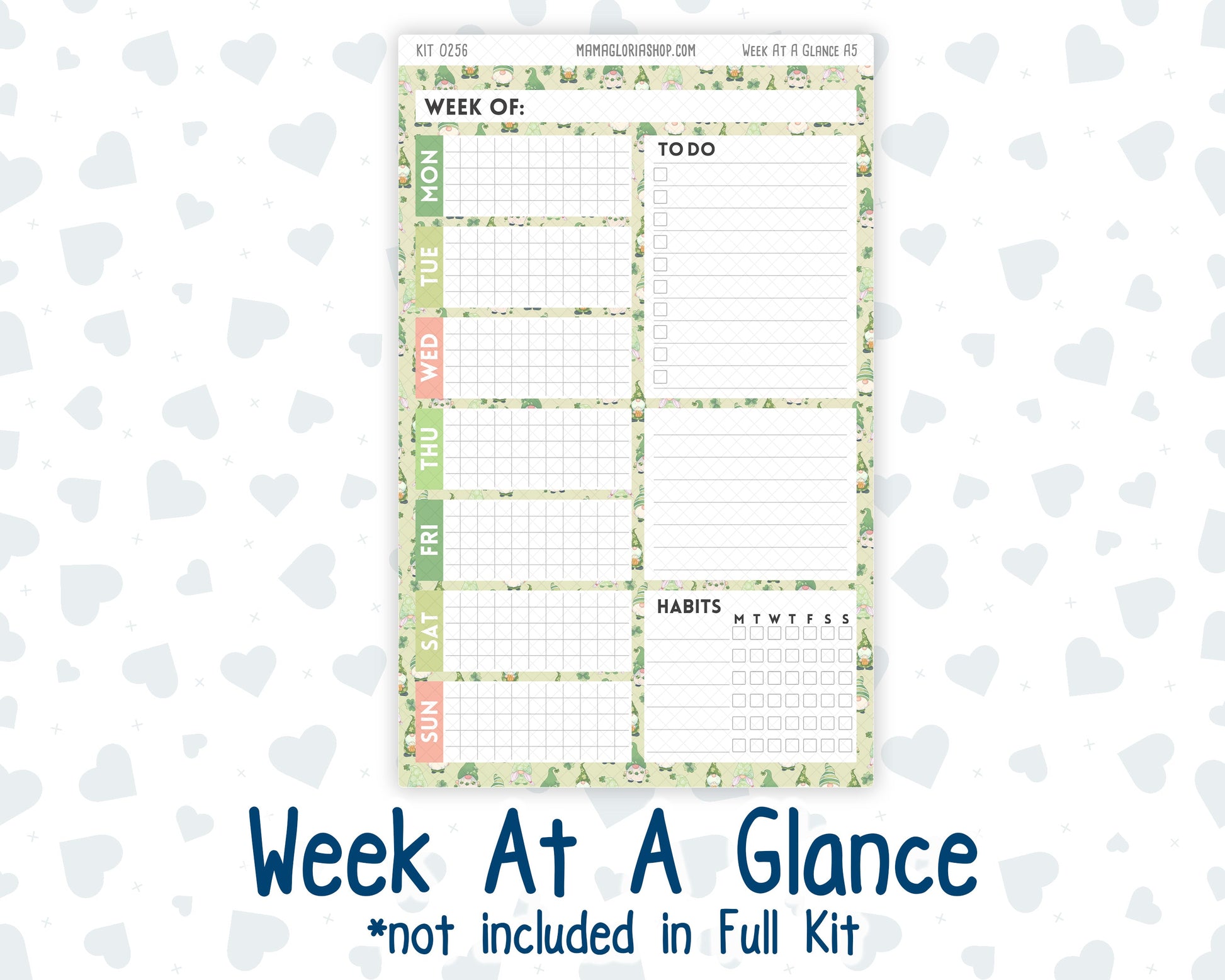 Please note, WEEK AT A GLANCE sticker sheet are not included in the "Full Kit" option.