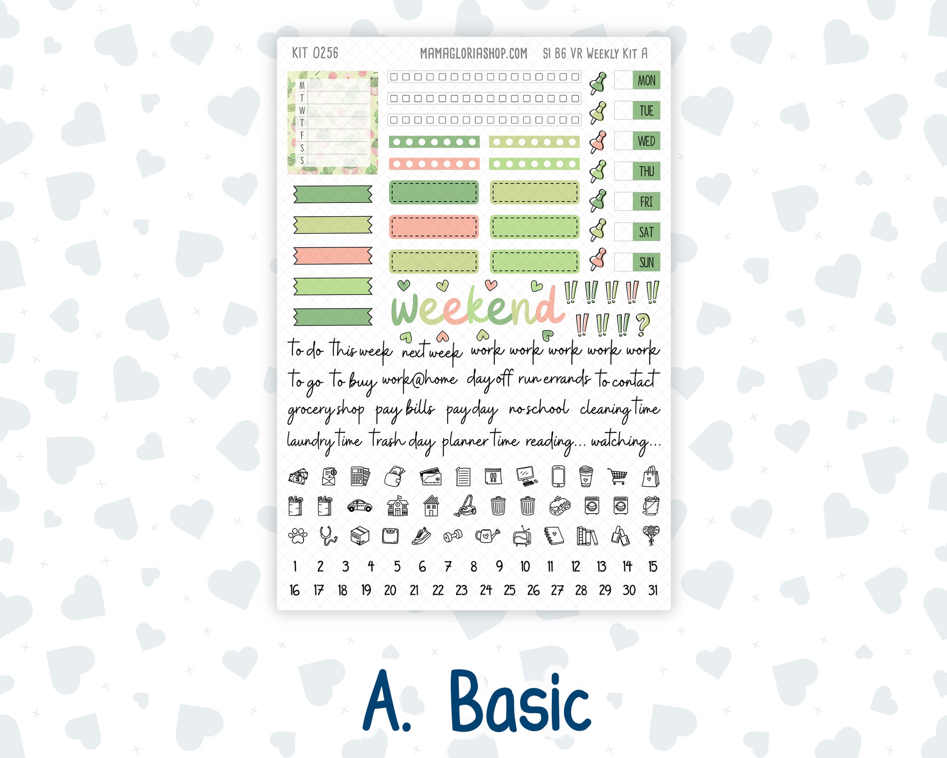 This kit is perfect for: • weekly planning • B6 vertical weekly layouts • functional planning • decorative planning • memory keeping • layering in B6 planners and journals • creating custom weekly layouts with boxes, labels, decorative pieces, and washi strips