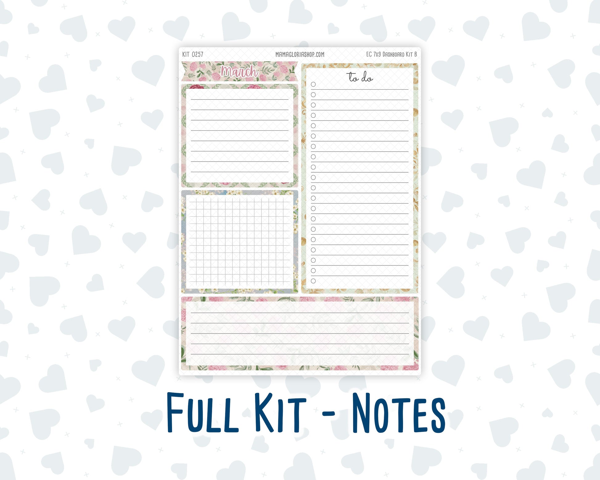 Kit 0257 - 7x9 - EC Notes Pages - Dashboard Kit | Productivity Page - March - Blush Garden