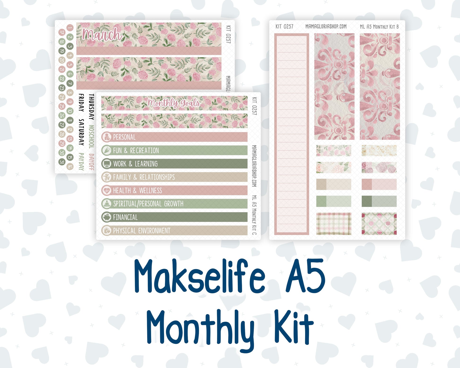 Kit 0257 - A5 - MakseLife Companion Notebook - Monthly Kit - March - Blush Garden