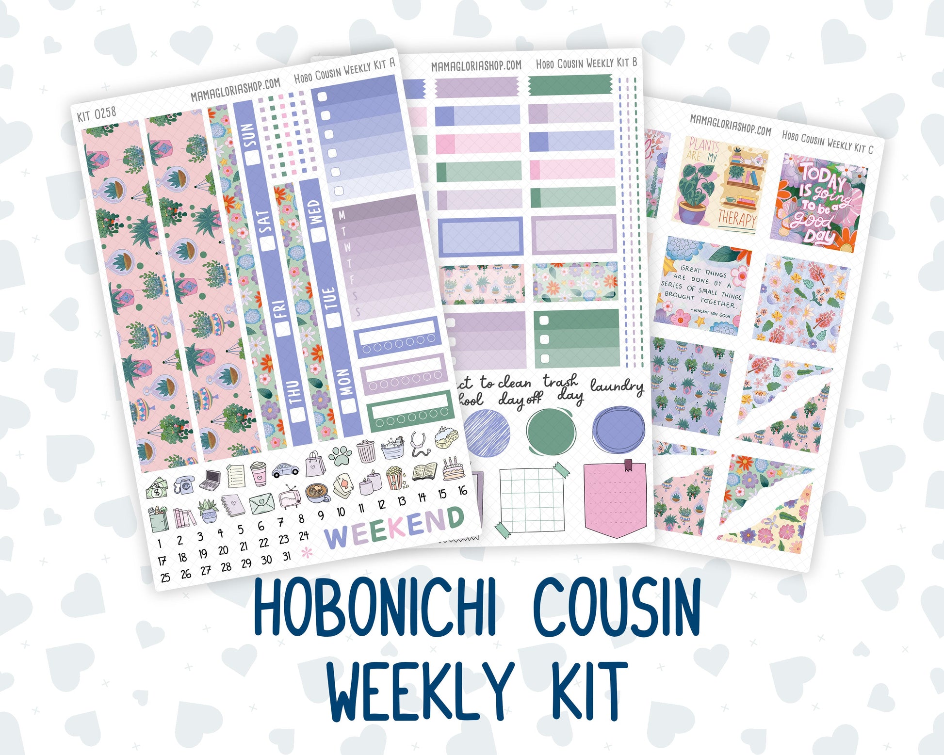 This kit is specifically designed for the weekly pages in the Hobonichi Cousin planner. The decorative and functional labels are approximately 1.3” wide.