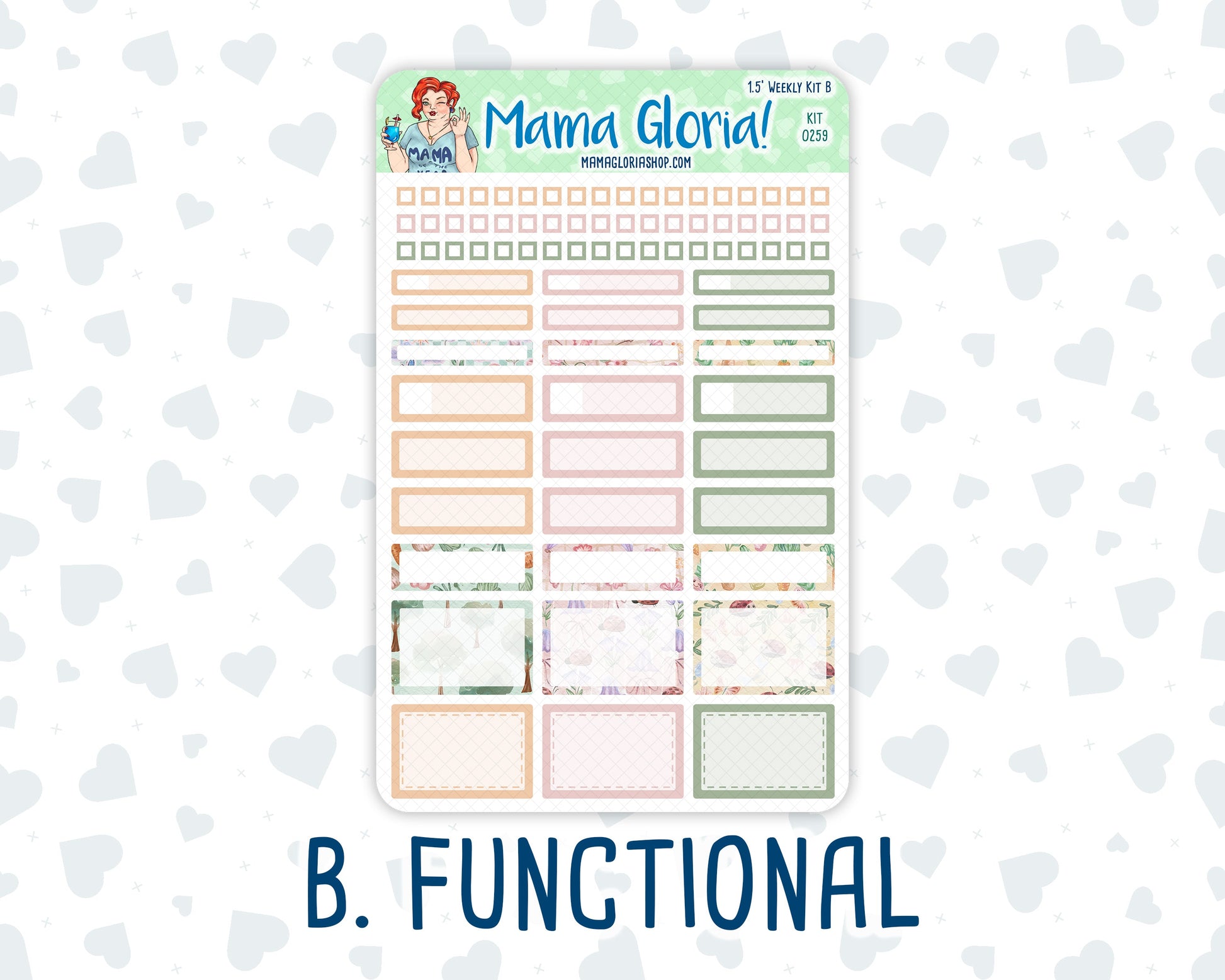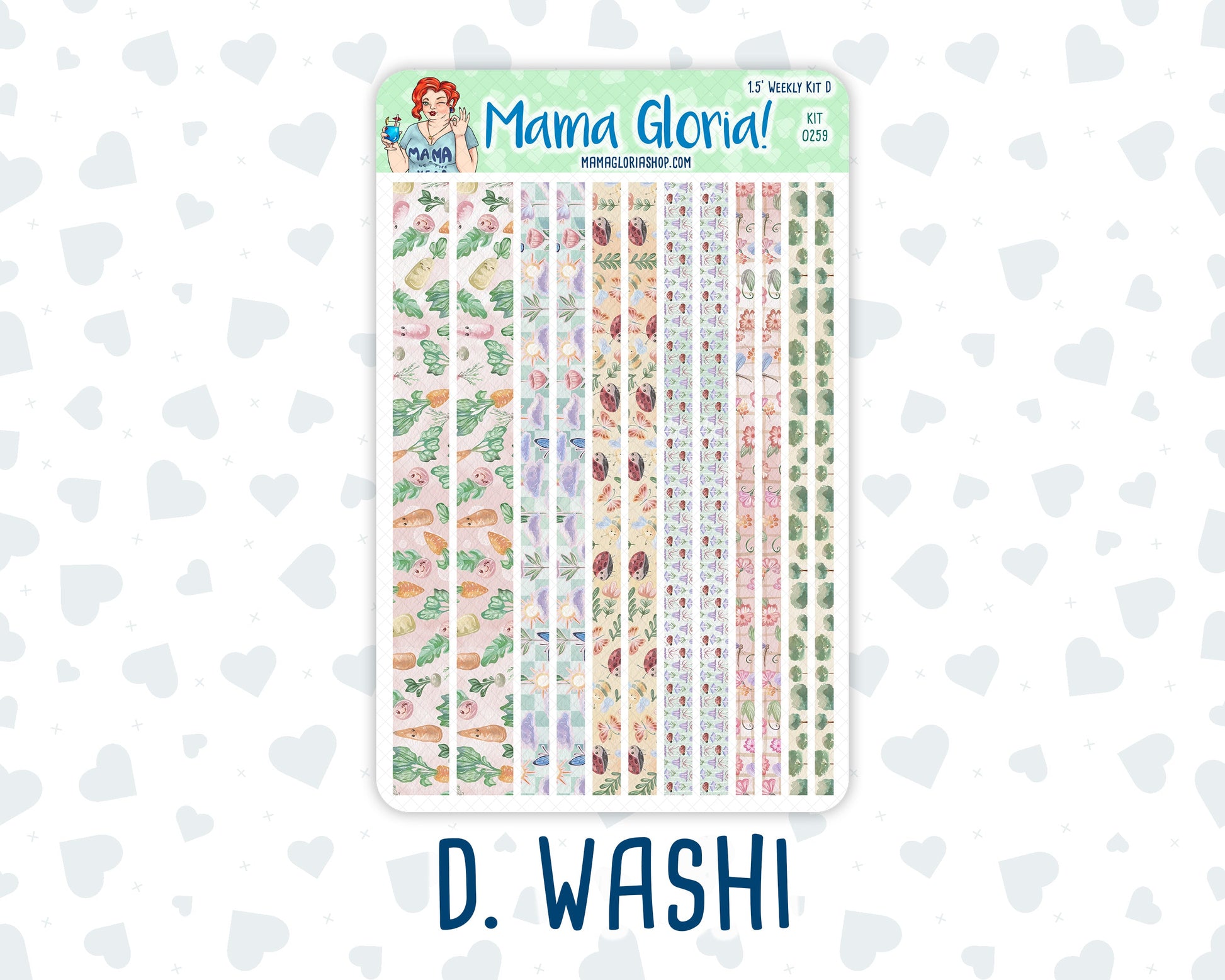 The Weekly kit consists of four full-sized sheets measuring 7.85 inches tall by 5 inches wide, including:
